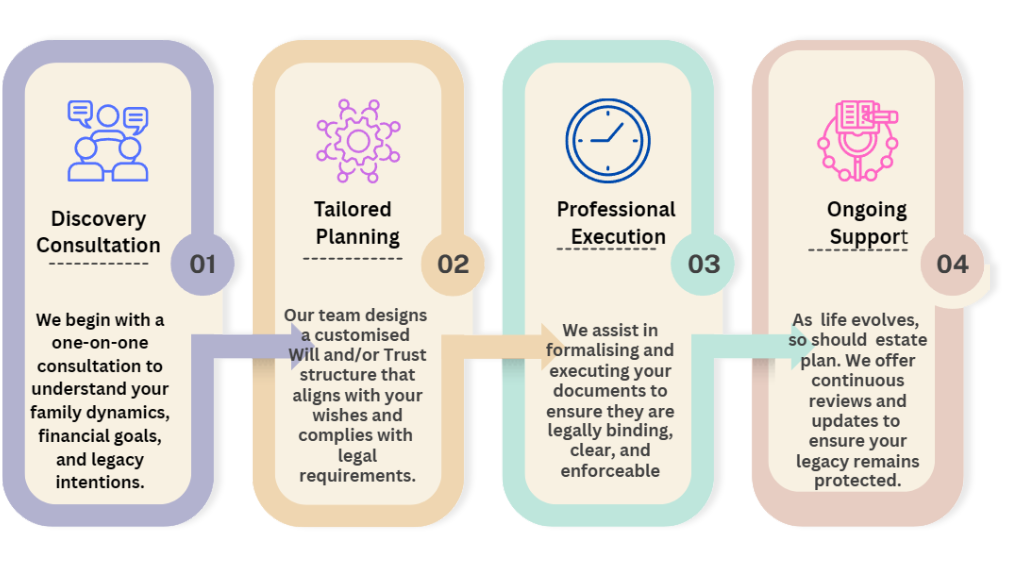 At FWG Trustee Berhad, we specialize in Wills and Trusts, the most important tools in estate planning, designed to help you protect what matters most, honour your wishes, and secure your family’s future. Whether you are just starting to plan or looking to strengthen your legacy, our dedicated team is here to guide you every step of the way. As a licensed trustee company, FWG Trustees Berhad serves as the cornerstone of our services, providing the expertise, infrastructure, and unwavering commitment to excellence that fosters trust, confidence, and success.